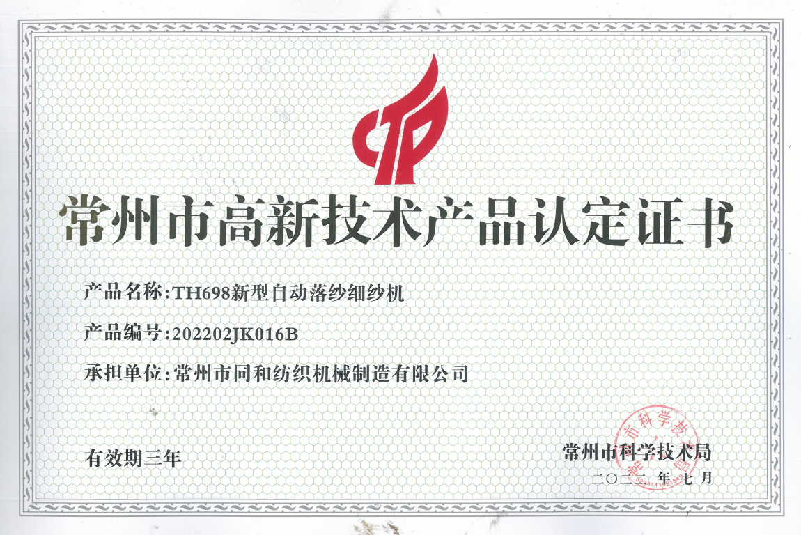 TH698高新技術(shù)產(chǎn)品認定證書
