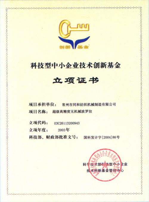 科技型中小企業(yè)技術(shù)創(chuàng)新基金證書